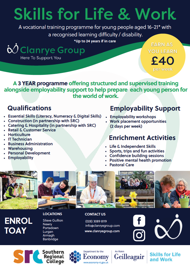 Please find information below outlining Clanrye Group Skills for Life & Work, Youth Academy and Apprenticeships NI programmes:
